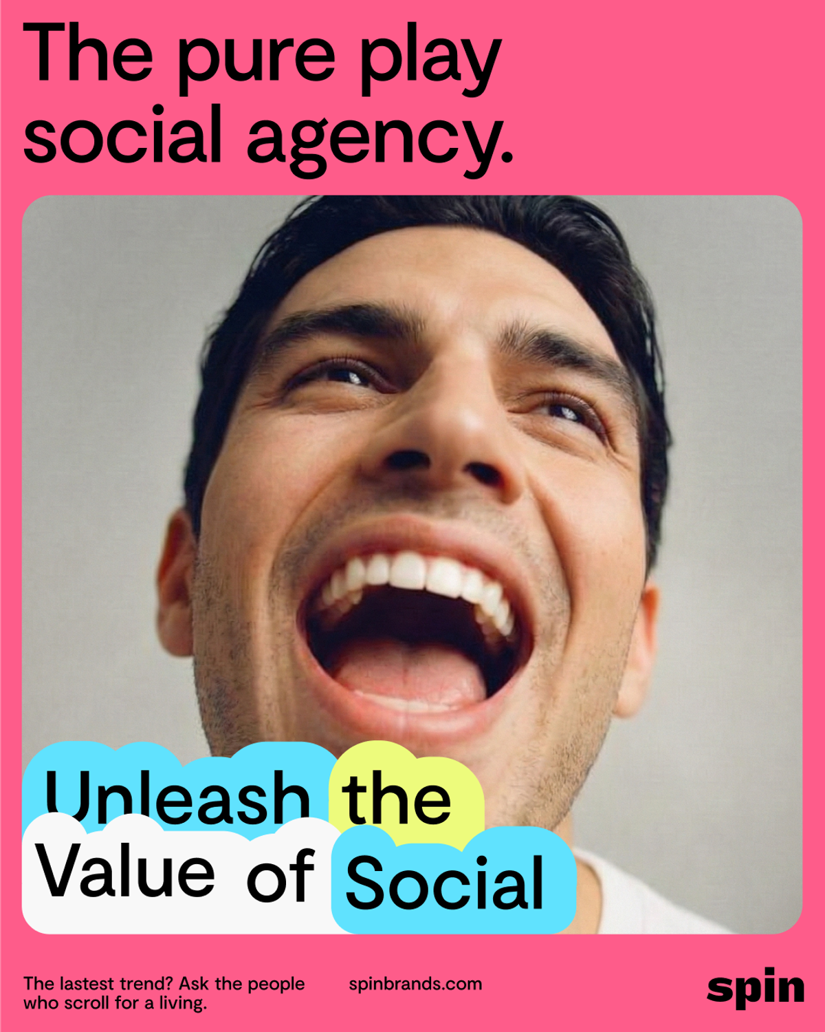 A new brand identity for Spin, the independent social media agency creating their own playbook for fast-changing culture. As a young, multi-cultural team of 50+ social media experts they combine data-driven strategy with social-first content. Based in London, operating globally. Working with them across strategy, tone of voice, design and web - our visual and verbal identity was rooted in the brand idea ‘Bubble Up’ - capturing their energy, youth and ambition as a social company at the centre of a fast growing category: the creator economy. Together, we created an agile yet immersive brand world - rooted in a digitally-driven tool which enables them to deploy typographic widgets throughout their outputs. From social posts to pitch decks this is a tool they can use from anywhere (as long as they have wifi).